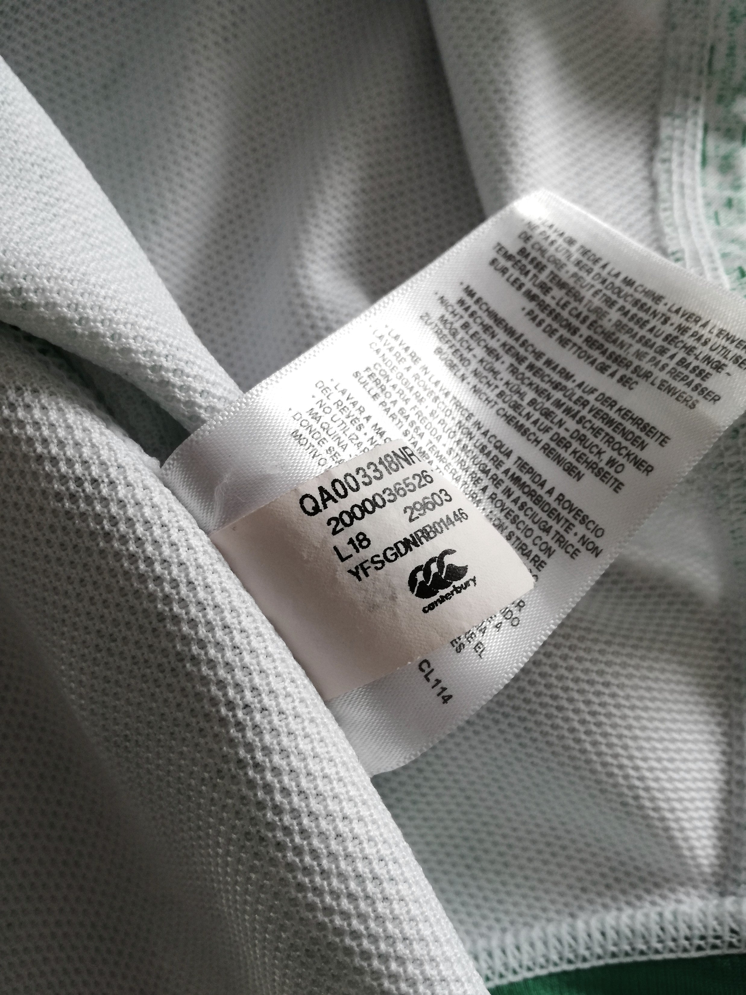 Official Canterbury Ireland away short sleeved rugby shirt from the 2019 international tournament. Complete with 2019 Rugby World Cup patch on the chest.
